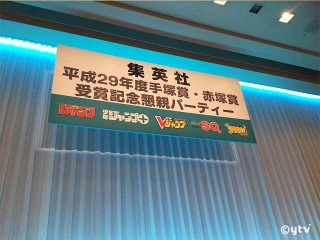 まず12月11日に開催されたのが集英社主催「平成29年度手塚賞・赤塚賞受賞記念懇親パーティー」これは年2回開催されてる恒例パーティーの年末版。伝統的に新人発掘にチカラを入れている少年ジャンプグループ独特の会ですね。会場入り口のロビーには毎回新人作家さんたちの受賞作品が掲示されていて、若い新しいエネルギーをゆっくり読んでみるのも楽しいです。