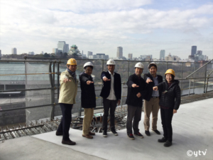 話は変わって、大阪は京橋駅近くにある我が読売テレビ社屋ですが、実は来年目指して新社屋を建設中です。場所は今の社屋から大阪城の方へ移動した、大阪城ホールに面して川をはさんだトコロ。劇場版「名探偵コナン から紅の恋歌(ラブレター)」で和葉のカルタ特訓の舞台になった「ホテルニューオータニ大阪」の向かいでもあります。…で、アニメーション部のメンバーと一緒に工事中の現場を内覧してきました。こーゆーのは建設中の今しか見れないのですが、完成予想図と見比べていろいろ想像がふくらみます。