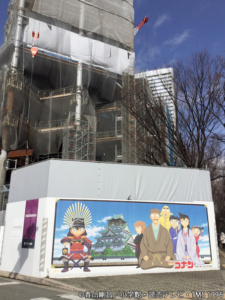 今の社屋の前に立ってるコナン君像もどこかに移動するとのことで、その場所をコナン君ならずともワクワクしている自分がいます。大阪城方面から川を渡ってすぐの工事中現場の壁には、大阪城とコナン君チームが大きく描かれています。以前もこの日記で紹介したのですが、今のこのあたりには至るところにコナン君がいますので、大阪を訪れる際にはぜひJR環状線京橋駅~大阪城公園駅(環状線内側)あたりを散策してみて下さいね。環状線では反対側になりますが、USJでリアル脱出体験後に大阪城散策、というのもオススメです。