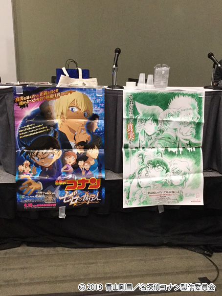 そして次の日はひとりでアニメ制作についてのパネルトーク。劇場版「名探偵コナン ゼロの執行人」のポスターをトーク席に貼り出して、現地の司会者と一緒にコナンについてあれこれお話してきました。とにかく今は日本において劇場公開直前大ヒートアップ状態であるコトをお伝えして予告編を上映。現状アメリカではクランチロールなどによる配信でコナンTVシリーズをほぼ見ることが出来る環境になっており、そのおかげもあって地元のコナンファンも多くなっている気がします。何よりコナンのキャラ設定の理解もしっかりあるファンも多く、質問する列の長いのには驚かされました。