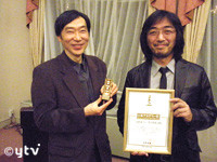 冒頭の写真は2週前にお話した、日本アカデミー賞優秀アニメーション賞受賞お祝いパーティー会場での山本監督(右)と脚本の古内さんです。この2ショットは確か昨年もこの日記でお届けしていますね。さてそれでは映画「天空の難破船」のアフレコがありましたので、日記300回記念として?その様子をお伝えしますね。