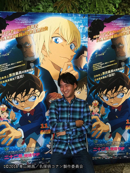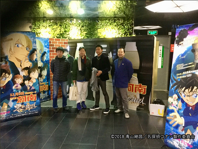 それにしても日曜のプレミア上映だったのですが、お客さまの年齢層は比較的高く、男性の割合が日本より多かったようです。エントランスロビーにできたチケットを求める列がいつまでも長く続いて、そこの頭上に大画面の作品予告が流れるたびに声をあげて注目してくれる多くのファンたち。日本の時と同じような光景を見られて本当に感激です。先述したようにコナン映画の中国公開は「名探偵コナン 純黒の悪夢(ナイトメア)」以来、そして今日現在もその時の期待値を上回るデータが多く出てきてるということで、これからもまだまだ本当に楽しみですね。