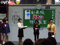 講義の内容は映画最新作「天空の難破船(ロスト・シップ)」の内容と昨年の映画「漆黒の追跡者(チェイサー)」のおさらい、さらにはコナンにまつわるクイズともりだくさん。でも2人は最新映画のアフレコがまだなので内容をほとんど知らず、ポスターや今現在の告知物でいろいろ想像して話しているのが、裏方スタッフとしてはちょっとニヤリとしちゃう一瞬です。