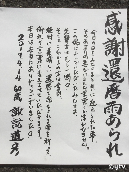 還暦蔡においでいただいた方にお渡ししたメッセージ