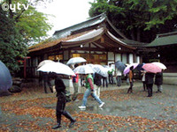 先週の雨がしとしと降るお昼、東京は杉並区・井草八幡宮で「犬夜叉 完結編」スタッフとお祓いを受けてきました。こーゆーお祓いはこの業界ではけっこう普通のことで、「名探偵コナン」も映画つくりのタイミングで毎年やっています。今回は時代が500年前のフィクションとはいえ、大勢の妖怪たちを殺したりしている設定なので、現場スタッフからの希望により行ないました。