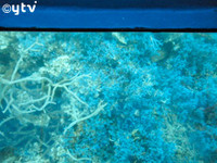 というわけで、今年の旅をひと言で表現するのでしたら、懐かしい歌のタイトルじゃありませんが、さしずめグラスボートで体験した“青い珊瑚礁”でしょうか。全員揃う夕食会場のなごやかさはアットホームなという表現がぴったり。冒頭の写真はグラスボートのガラス越しの“青い珊瑚礁”(本当に青くてびっくり)とビーチで撮った声優・山口さんと草尾さんの2ショット。妙な看板を入れ込んでるのがミソ?。