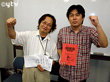 「犬夜叉 完結編」シナリオ作業はもう全体の半分を超えてます。先週もお伝えしましたように、たくさんの方々の想いがわれわれスタッフに乗り移ってきたかのように、現場はあわただしさを増しています。久しぶりの2ショット写真は監督の青木さん(右側)と脚本家の隅沢さん。2週間に1度のペースでシナリオ打ち合わせもバリバリやってます。もろもろご期待下さいね。