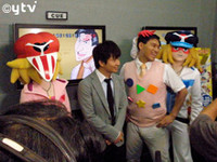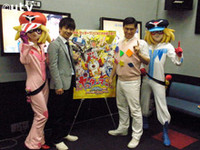 とにかく若林さん、春日さんは収録も取材も120%全力って感じのパワーで応じてくれてね。そのやりとりがまんま2人の漫才みたいでホントに面白くて、近くで見ていたスタッフもいちいち大笑い。(冒頭の写真左はヤッターマン着ぐるみとオードリーの2人の取材スナップ、1号の手が春日さんの頭に!?モニターの春日さんも似てるでしょ。右は4人にキメテもらいました。)アフレコから立ち会っていた笹川総監督も「本当に面白い二人だね」と生オードリーに驚いていました。聞いていると2人は中学からの同級生なんだってね。そんな幼ななじみな2人が世界観を作り、一つの芸としてすごくウケているなんてうらやましいよねえ。もちろん本人たちの努力もあってのこと、この映画にもにもその力をふんだんに出してもらい、これからもパブリシティにも大きく協力してもらいます。そして取材に来て下さったリポーターや記者のみなさま、お疲れ様でした、ありがとうございました。さあオードリーの活躍もぜひお楽しみにしてくださいね。