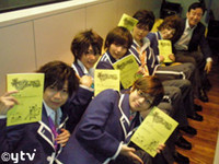 それにしてもエンディングテーマの「勝つんだ!」という力強いタイトル通り、みんなに元気を与えてくれている腐男塾の7人のメンバーたち。この日はキャラクターデザインの上北ふたごさんが描いた、本人たちそのままの見た目通りのメンバー(この日は6人)が、明るく元気いっぱいの演技を披露してくれました。アフレコ後は「すごく難しかったけどみんなでチームワーク合わせてできて楽しかったです」と収録の感想を話してくれました。自分たちの収録の前に、スワッチと並んで真剣な表情でアフレコを見てくれてた腐男塾のみなさま、本当にありがとうございました。ますます活躍の場を広げる腐男塾が登場するのは「ヤッターマン」6月21日の放送。冒頭から登場し、後半はあのビックリドッキリメカもやってもらいました。どーゆー風になってるかはオンエアまで楽しみに待っていて下さいね。