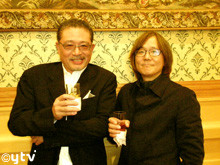 毎年この時期に恒例の「第54回 小学館漫画賞」の授賞式が都内のホテルで催されました(写真(2))。今年の〈少年向け部門〉は、あだち充先生『クロスゲーム』が受賞、なんと26年ぶりの受賞だそうです。この時間経過を経た上で〈少年向け部門〉という同部門での受賞ってなんだかものすごい事ですよね。強烈にリスペクトいたします。そんな訳で今週の2ショット写真(3)は左から、受賞式お祝いパーティーに駆けつけた同世代友人の漫画家・とがしやすたか先生とあだち先生です。あだち先生、本当におめでとうございました。