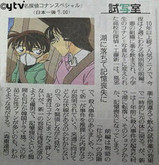 皆さま、1月19日に放送した1時間スペシャル「名探偵コナン 殺人犯、工藤新一」はご覧になって頂けましたか?冒頭の写真は当日の読売新聞朝刊のTV欄試写室のコーナー。こーゆー欄に掲載されるのは宣伝部スタッフはじめ、多くの人の手によって初めてできること。スケジュールギリギリの作品アップに合わせて書いていただいた森重達裕記者にも大感謝です、ありがとうございました!