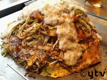 広島ではイベント後いくつかの取材を済ませてから、映画館の支配人・安藤さん、東宝宣伝・豊澤さん、浅井さんと15時ころの遅い昼食を。安藤さんが連れてってくれた地元のお好み焼き屋Mで食べたのが“マウンテンお好み焼き”なるメニュー。これは大中小と3サイズの広島風お好み焼きを作って、山のように3層に重ねて上から山芋をかけたものでね。(写真(2)は携帯でとったもの、楊枝で大きさがわかるかな)山頂に雪化粧をした富士山のように大きく美しくてオイシイお好み焼きでした。