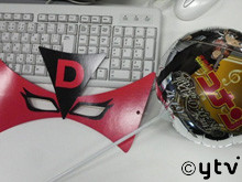時間の合間を見て東京国際アニメフェアにも行ってきました。オタコンのブースにあいさつしたり、東宝や小学館、日テレやトムス・エンターテインメントなどの各ブースを見て回って、いろんな方とお話し出来ました。東宝ブースは映画「名探偵コナン 戦慄の楽譜(フルスコア)」の公開に向け、パイプオルガンを配したすごい大セットが目立ってましたよ(写真(3))。ニュースで知っている人もいると思うけど、同フェアの初日には実写映画「ヤッターマン」の製作発表も行われたんだ。「ヤッターマン」をメインに展開する各社共同の巨大ブースでは、セクシーな4人のドロンジョガールがパンフレットを配ったりしていて、話題もいっぱい華やかなムード。特に同ブースに用意された紙製ドロンジョマスクは良くできていて、引っ張りだこになっていたんだ(写真(4)はそのマスクと東宝ブースで配ってたコナン風船実物)。何かとヤッターマンでお世話になってるメイン・エンタテインメントの竹澤さんにそのマスクを何枚かもらって「ヤッターマン」のアフレコ現場に持参。ドロンジョ役の小原乃梨子さん、アイちゃん役の伊藤 静さん、オモッチャマ役のたかはし智秋さんらヤッターマンチームが誇る美女たちに渡して付けてもらったんだけど、もうこれから人前ではそのままでお願いします!というくらいみんなお似合いでした。