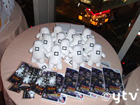 関西・読売テレビでは「結界師」最終回の放送を無事に終えました。そして先週、170人を超える役者さんやスタッフ・関係者が東京・原宿のVというお店に集まり、52話の打ち上げを盛大にやりました。外は寒風吹きすさぶ夜の9時、打ち上げの冒頭ではこだま監督があいさつを行い、続いてサンライズ・富岡Pの乾杯の音頭で華やかに宴はスタート。役者側は墨村良守役の吉野裕行さん、雪村時音役の斉藤梨絵さん、斑尾役の大西健晴、白尾役の石井正則さん、志々尾限役の宮下栄治さん、神田百合奈役の和希沙也さんらほとんどのレギュラー陣が一堂に会したんだ。ユニークな賞品もいっぱいの楽しくて豪華な抽選会もあれこれ盛り上がって、楽しい一夜を過ごす事ができました。(写真(1)は賞品にもなった式神たちほか、背景は明治通り。写真(2)は1次会終了時、参加した結界師スタッフ有志たち)