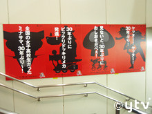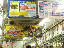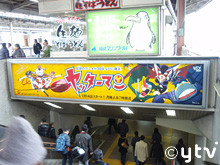 ヤッターマンチームは東京・浜町のスタジオでアフレコしたんだけど、丁度その日は鏡開きの日でね。広いロビーに臨時テーブルを出してくれて、スタジオ会社がその会社のスタッフのみならず、役者さんはじめわれわれ制作スタッフ全員におしるこを用意してくれたんだ。ありがたーくみんなで順々に温かくて美味しいおしるこに舌鼓、良い仕事スタートになりました。そのおかげかバリバリ元気になったメインスタッフや音響スタッフは即ダビング作業に突入。細かい作業も含めてダビングを終えた後は笹川総監督、しぎの監督らスタッフ8人で浜町のYというお店でチキンな食事をしました。この時は当然「ヤッターマン」第1話の放送前だったから、まさに人事尽くして天命を待つ心境、でも心は大きく羽ばたきながらの食事でありました。そうそう、渋谷駅やJR各駅のみならず、京成線や東急線をメインに、それから都内に乗り入れている都営浅草線や半蔵門線の車内にも、映像や中吊りポスターなどでいろいろにヤッターマンが’出没’していてね。見られない方のために写真を撮っておいたから(写真(4)は浅草線にて)