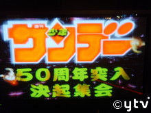 その後の二次会は雑誌ごとに会場を移して行われ、スワッチはサンライズ・富岡P、小形P、文芸の高橋さんと一緒に「少年サンデー二次会」会場の六本木Aへ。同じ建物で開かれていた「ヤングサンデー二次会」にも顔を出してきました。こっちの二次会には、今年コナン応援団として「名探偵コナン」をPRして、番組にも声で出演してくれた山本梓さんも来ていてね。きっちりご挨拶ができました。二次会はサンデー編集スタッフやいろんなゲストが楽しいあいさつを披露、そしてメインは豪華賞品が当たるビンゴ大会。スワッチは今まで何年も当たった事がなかったのに、結界師やコナンのアニメチームとしてはただ1人ビンゴしてしまってね。任天堂のWiiをゲットしちゃいました。どうしちゃったんだろう、めったにないことなので、今年もあと少しだけど妙なところで運を使い切っちゃったりしないように、なんて考えちゃいます。そうそう来年、「少年サンデー」と「少年マガジン」は創刊50年イヤーに突入するそうです。この2次会のタイトルも