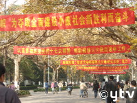 今回は「日本国外務省草の根文化無償協力同時通訳施設贈呈式」における記念講演会であるそうです。すなわち日中文化交流のため、日本から同時通訳できる機材が南京大学に贈呈されて、その記念に関係者や学生たちが集まり式典をし、なぜかスワッチの話をその機材を通して聴いてやろうじゃないか、ということのようでした。ご指名をうけて大変に光栄です。で、ヘッドホンにつながっているこの機材にはチャンネルが2つあってね。チャンネルを切り替えると、話している人の声と同時通訳の人の声と別々に選んで聴くことができるというスグレもの。(写真は、ネームプレートの後ろによく見えないけどヘッドホンと2チャンネル切り替え機材・会場前の告知ポスター・南京大学学内の様子)
