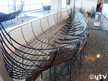 2日目は岡田大使直々の案内でガイナックスの山賀社長、「新世紀エヴァンゲリオン」のマンガ家であり、キャラクターデザイン・貞本さん、ガイナックス制作・佐野さんとデンマークの古都・ロスキレに行ってきました。コペンハーゲンから車で1時間弱の小さな町には世界遺産「ロスキレ大聖堂」があります。我々の目的は「ヴァイキング船博物館」。西暦1000年頃からフィヨルドに沈められていた船を発掘したもので、冷たい水にさらされた時間の固まりのような黒い木材がいろいろ海の歴史を物語っているよう。丸い湖にも見えるフィヨルドの黒い海は、結構寒い風も手伝って、まだ序の口の姿の厳しい自然を思い起こさせます。代々の王室の棺があちこちにある「ロスキレ大聖堂」も、人間がかもし出してきた時の流れを理解するのに最適な空間。床にはめこまれ磨り減った石版の文字に一瞬めまいをおぼえます。一緒に行動した山賀さんも「改めてデンマークの歴史を勉強したくなったね」と言っていました。