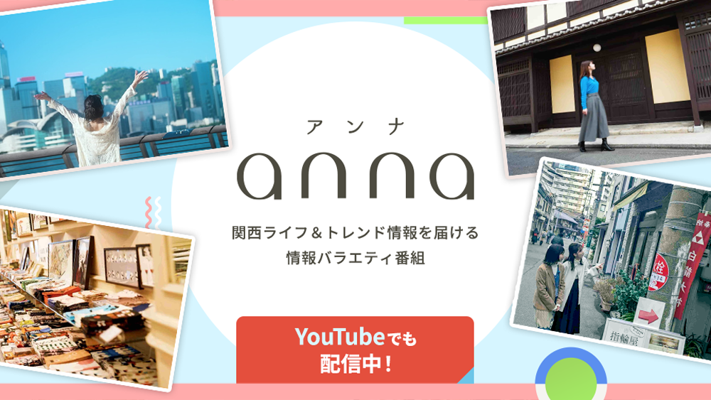 ウェブメディア「anna(アンナ)」と連動したテレビ番組「anna」は、「関西の暮らしがもっと楽しくなる情報」をお届けします。