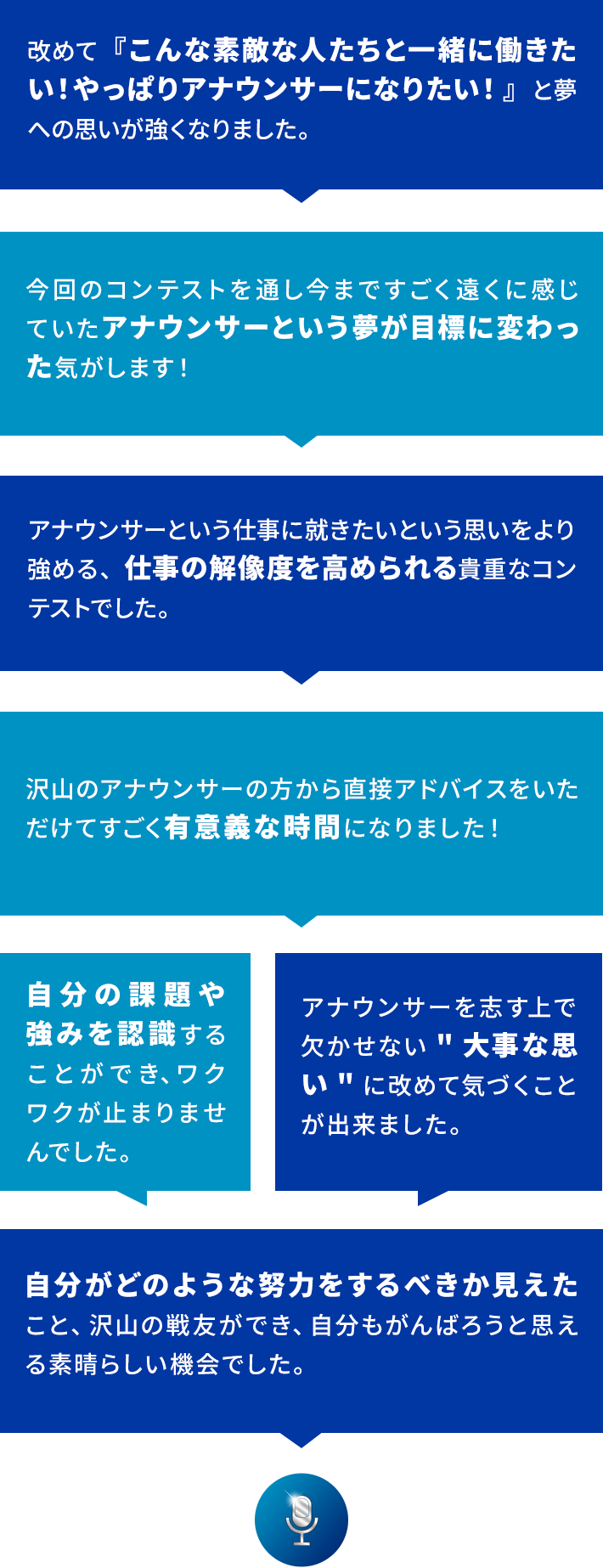 ただし、決勝進出者に行うアナウンサーによるレッスンは非公開となっています。 -