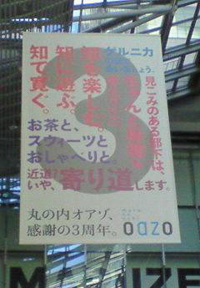 というショッピングモールをブラブラしていました。本屋さんの「丸善」が入っていて、時間をつぶすのにはもってこいだったのです。そこで見かけたのは写真のような垂れ幕です。