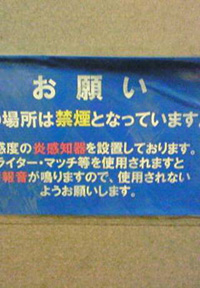「ライター・マッチ等を使用されますと警報音が鳴りますので、使用されないようお願いします」
