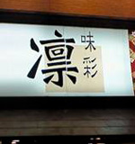 大阪・北新地で見つけたお店の看板。ちょっとにじんで分かりにくいですが、これは「ノ+木」の「凜」でした、わかりにくいけど。下が「木」ですよね。こちらの店の方が、ミナミの店より歴史があるのかな?