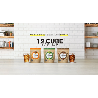 - 水やお湯に溶かすだけで飲めるようになる新ジャンルのフリーズドライ飲料「1,2,CUBE」。