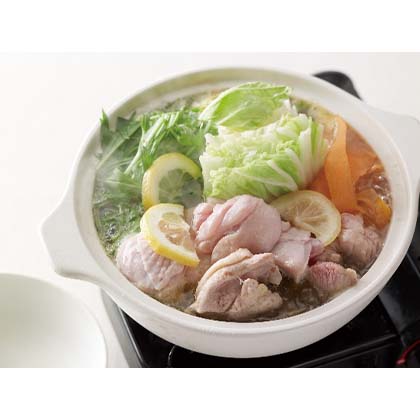 始めの鍋は鶏の旨みと昆布、焼きあごだしに、レモンと柚子の風味を合わせたあっさりした味わい。
