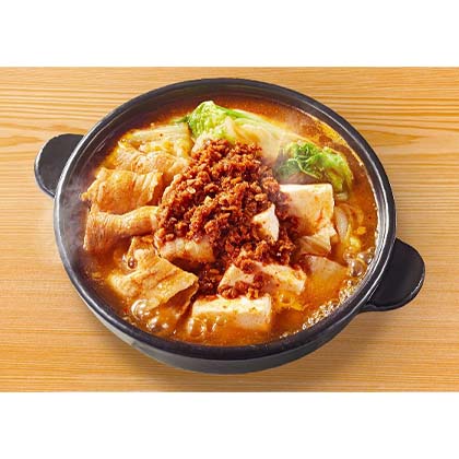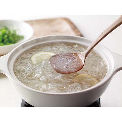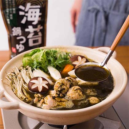- かつお・昆布だしベースのつゆに、有明海産海苔をふんだんに加えたやさしい味わい風味豊かな変わり鍋のつゆ。