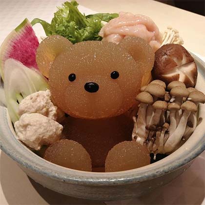 - くまちゃんが浸かる程度に水を少し入れて、くまちゃんを鍋の中に入浴させれば…