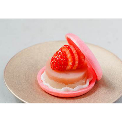 冷凍・半解凍・全解凍の3通りの楽しみ方ができ、「苺&ピンクペッパー」、「葡萄&ラム」、「烏龍&杏仁」など普段なら和菓子に使われないような食材を使った斬新な“味の掛け合わせ”も特徴!