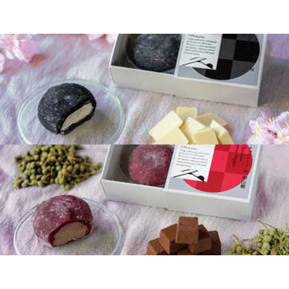 またバレンタイン期間限定で黒(ホワイトチョコ×桜リキュール)と白(ダークチョコ×和山椒)の2種類のチョコ大福も期間限定で販売中!