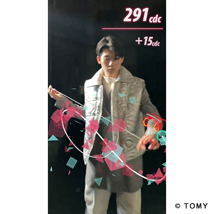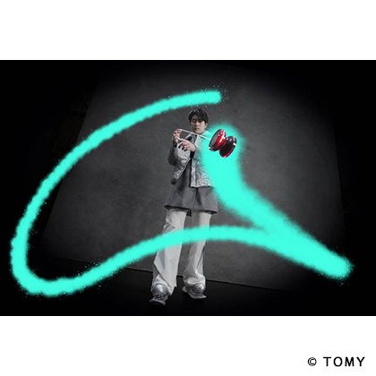 - ヨーヨーをスマートフォンにかざして専用アプリを使うと、ヨーヨーの動きに合わせてARエフェクト「グラフィックス」をつけたクールな動画がリアルタイム撮影できます。
