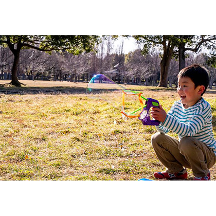 - まるで水鉄砲を操作しているような感覚で、簡単に大きなシャボン玉を作ることができます。