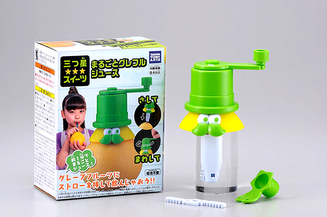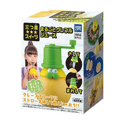 市販のグレープフルーツに差し込みレバーを回すと生絞りグレープフルーツジュースが完成します。
