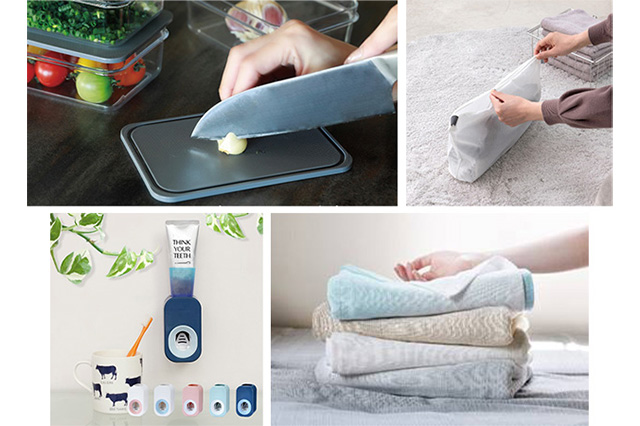 (蓋がまな板になる保存容器、フランドリー・やさしく巻いて洗うネット、歯磨き粉 ディスペンサー、フレテミタオルシーツ「furetemi」)