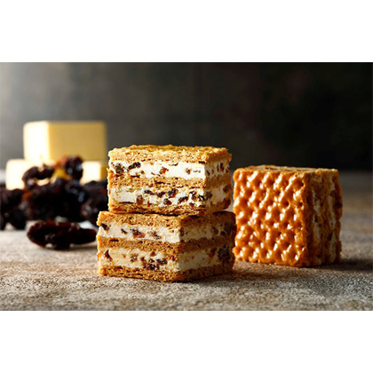 - ラムレーズンを混ぜ込んだ国産バターのクリームと香ばしいパイを重ねた「ラムレーズンバターミルフィユ」はあべのハルカス近鉄本店限定