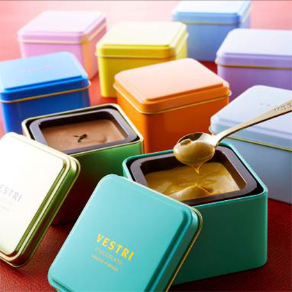 付属の⾦のスプーンですくって⾷べるなめらかな口溶けのチョコレート。 - トーストやクラッカーに塗ったり、電⼦レンジなどで溶かしてフルーツにディップしたり。⼯夫次第で様々な⾷べ⽅をお楽しみいただけます。