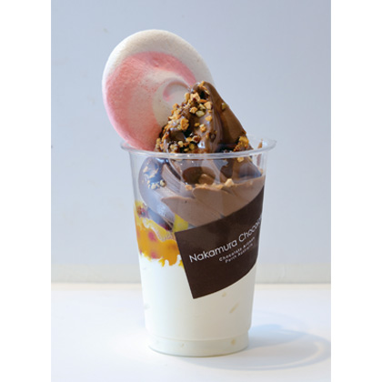 3種類のスペイン産クーベルチュールチョコレートをブレンドしたソフトクリームに、トンガ王国産ヘイララバニラを加え、シーソルトチョコレートキャラメルをトッピング。