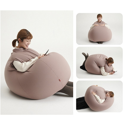 「いつでもどこでもダメになれるクッション」をコンセプトに、丸くもっちりとしたクッションを着たまま、座ったり転がったりすることができる。 - 着るだけでなくビーズクッションとして使用することも可能で、モスグリーン、ナチュラルベージュ、モカ、チャコールグレーの4色から選べる。