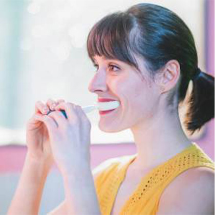 独自開発のブラシヘッドで、音波振動によりブラッシングを行い、上顎下顎それぞれの歯の頬面、舌面、咬合面を同時に5秒ずつ、合計で最短10秒でブラッシングすることが可能。 - また歯ブラシの毛先を歯と歯茎の境目に45度の角度で当てて、歯周ポケットの中に毛先を入れて細かく優しく磨く方法(バス法)での歯磨きを実現。