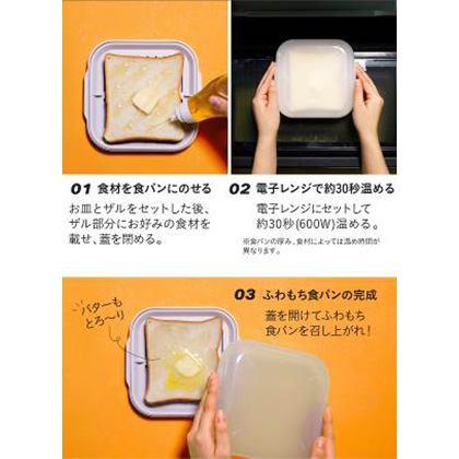 お皿にラップをして食パンを温めるよりも、食パンがふっくらします。 - 調理後は蓋を外してそのまま器としても使用可能。