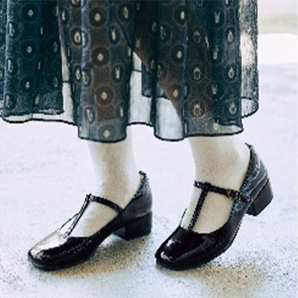 ミュージアム部 美術館に履いていきたい 音が響きにくいエナメルTストラップシューズ