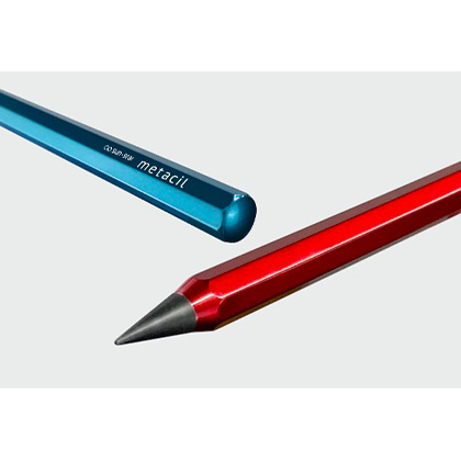 - 軸から芯まで全て金属製の“メタルペンシル”。芯は、黒鉛を含んだ特殊合金で作られています。