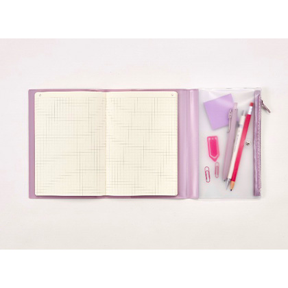 - ペンやノートなどをまとめて持ち運べる isshoni.ペンケース付ノートカバー。