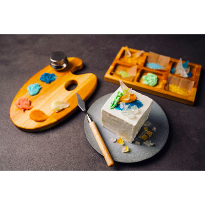 - パレットにのったカラフルなクリームや、標本箱に入った鮮やかなトッピングパーツを自由に盛り付けて、自分だけの"オリジナル作品"を仕上げて頂く体験型のケーキ。