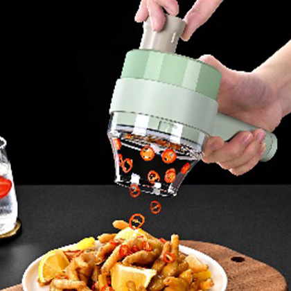 - 野菜などの食材を本体上部の穴から軽く押し込むことで、簡単にカットできる!