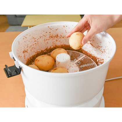 - 約2分でじゃがいもの皮を自動でむける電動皮むき機。