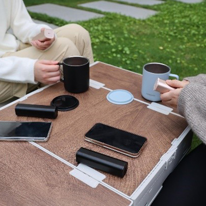 吸熱剤自体の熱と蓄熱性の高いステンレスによって徐々に本体外側に熱を逃がしつつ飲みやすい温度を1時間程度保てる。電子レンジは使用不可。